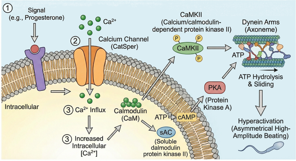 Spermin testisten çıktıktan sonra dölleme yeteneği kazanması için geçirmesi gereken “Kapasitasyon” (olgunlaşma) süreci de büyük ölçüde kalsiyum dengesine bağlıdır. Hücre içine giren kalsiyum, spermin kuyruk vuruş paternini değiştirerek sperme dölleme yeteneğini kazandırır.